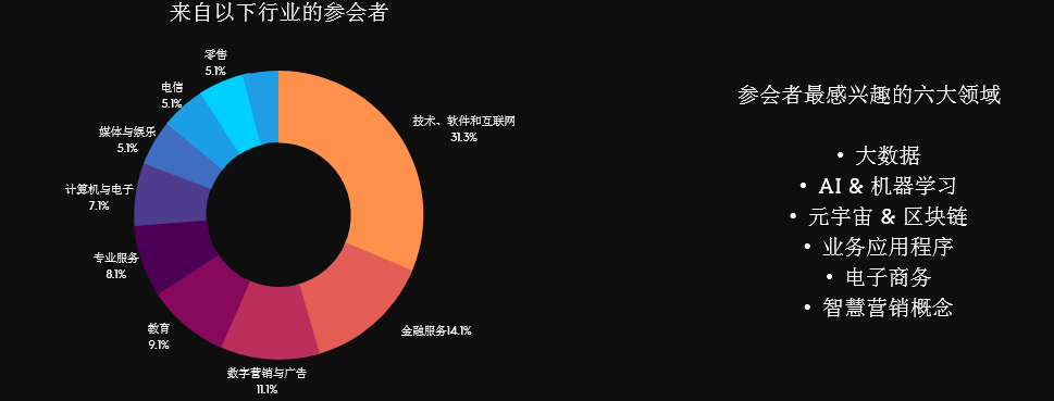 过去两年,BUSINESS GOVirtual展会每年都吸引大量优质买家(来自企业决策者、金融投资、行销科技、CxO.工程及技术经理、物流及供应链等领域的高层管理者)云集展会现场挖掘新产品/技术,是科创企业向世界展示最新的高端技术的平台,也是行业解决方案供应商拓展新机遇、推广品牌、促成合作及建立新合作机会的绝佳机会。