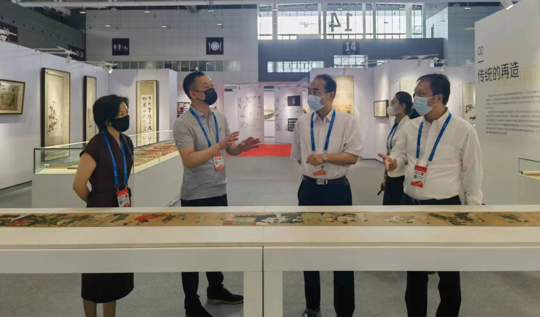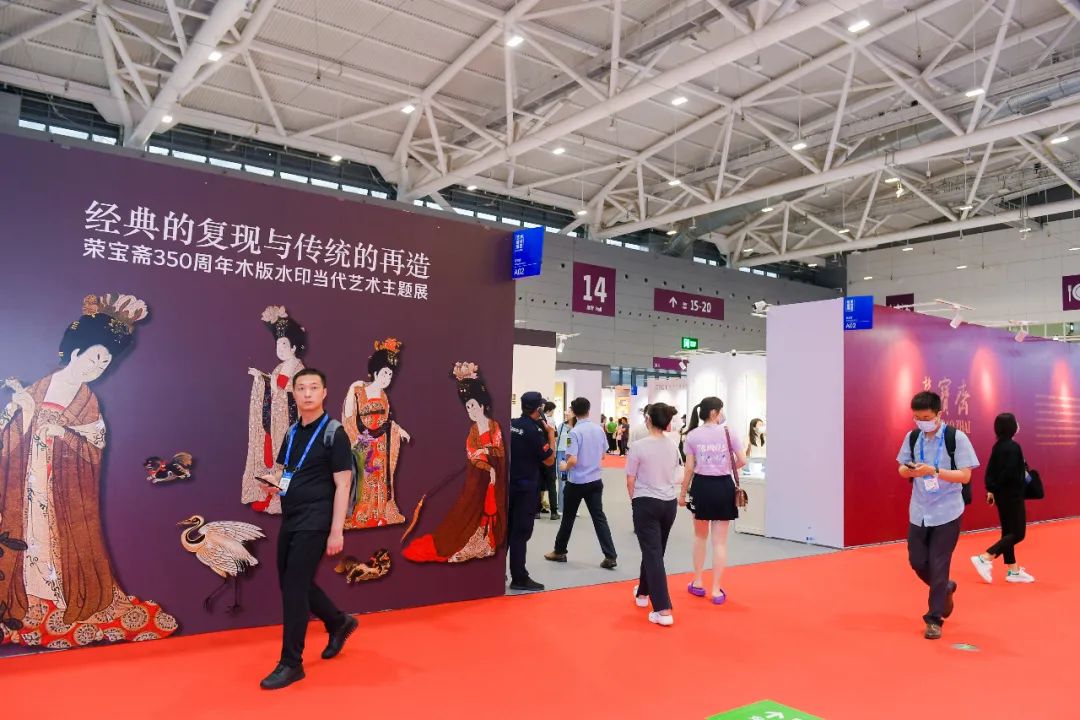 为期5天的第十九届中国(深圳)国际文化产业博览交易会(以下简称“文博会”)6月7日上午在深圳会展中心开幕,荣宝斋在本届文博会展览呈现了“传统荣宝”和“创新荣宝”的综合面貌,展区包括名家书画真迹、木版水印珍藏作品、数字荣宝成果和荣宝文创四部分内容。此次展览得到各界嘉宾的热情关注,中国出版集团有限公司党组书记、董事长黄志坚,中国出版集团有限公司党组成员、中国出版传媒股份有限公司副总经理茅院生一行参观了展览。荣宝斋党委书记、执行董事赵东陪同观展,相关负责同志介绍了此次文博会展览的情况。