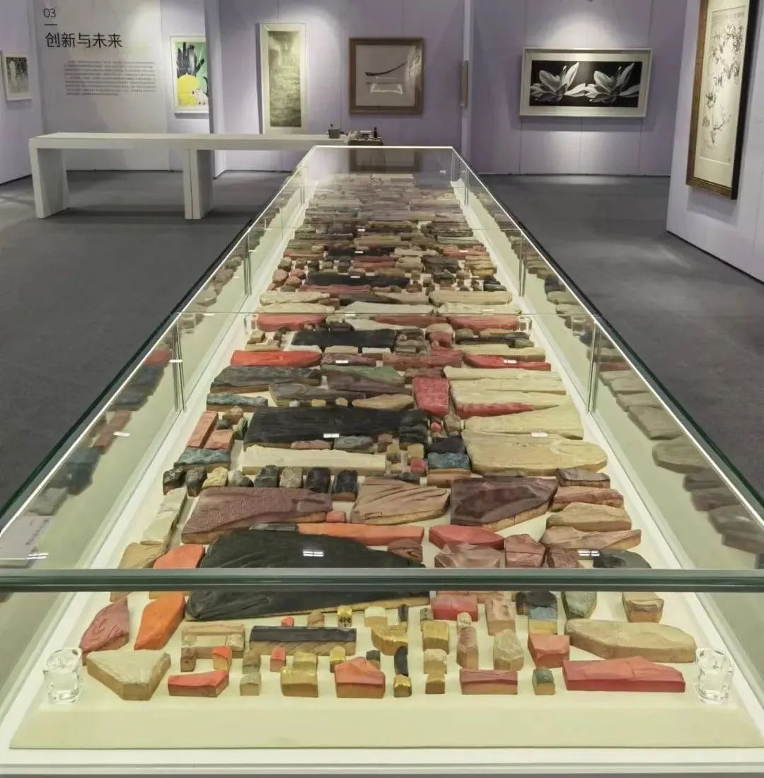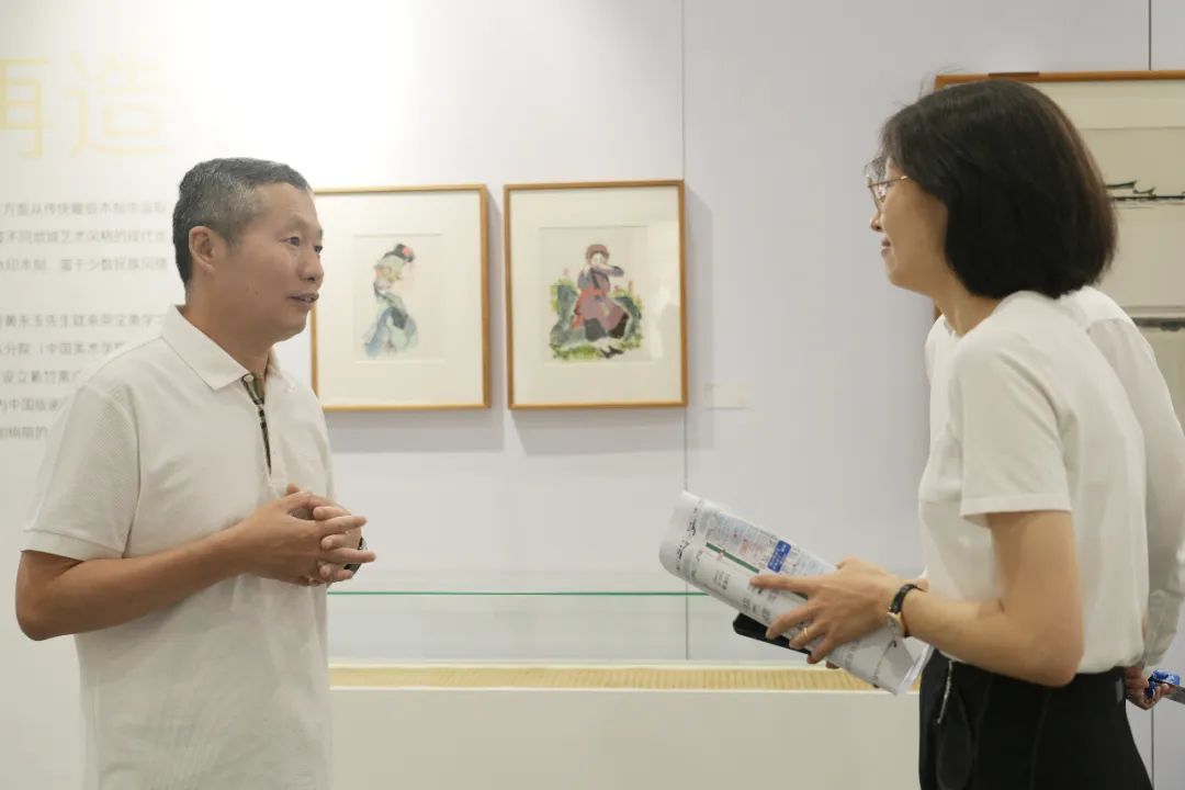 来宾们欣赏了来自近现代书画名家作品,其中包括康有为、傅抱石、林墉、齐白石、关山月多幅真迹作品。参观了国家级非物质文化遗产木版水印制作技艺代表作品《韩熙载夜宴图》与《簪花仕女图》,并给予高度评价。领导们与荣宝斋木版水印非遗传承人进行了交流,现场体验了齐白石《太平》作品的印制环节,了解到木版水印技艺的独特魅力。为纪念荣宝斋创设350周年(1672年一2022年),荣宝斋梳理了木版水印127年的发展足迹和阶段性成果,并携手国家大剧院推出荣宝斋350周年木版水印当代艺术主题展“经典的复现与传统的再造”,此次同时展出。