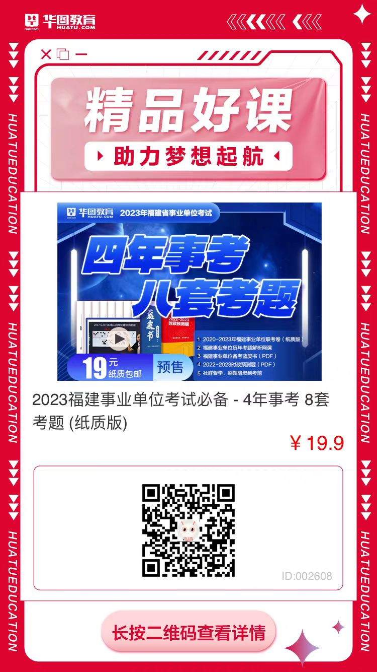 关注【福建华图事业资讯】,回复【编内】获取详细公告;回复【800】参与活动