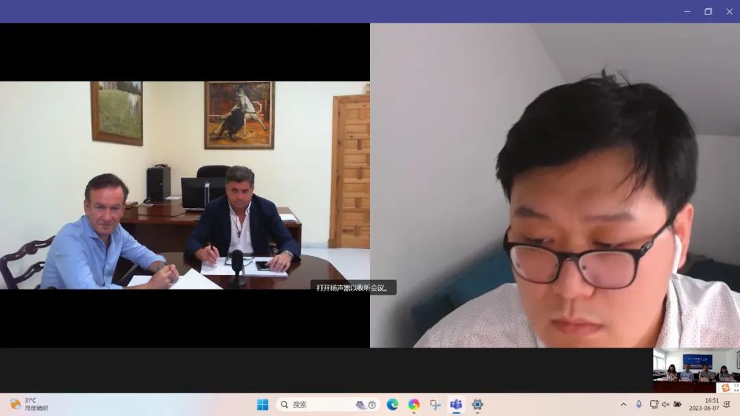 为拓展我市与西班牙赫雷斯市在葡萄酒领域的合作,搭建经贸交流合作平台,中心组织烟台高升酒业有限公司和烟台神马橡森国际贸易有限公司等企业参加了线上交流洽谈会,市外办、市葡萄酒中心相关业务负责人参加洽谈。