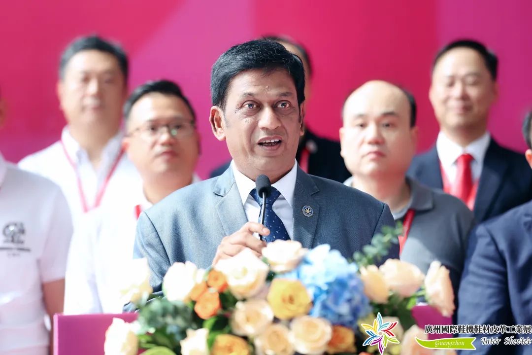 本届展会获得了全国各地鞋业商协会代表和行业精英鼎力支持,越南、印度巴基斯坦、日本、台湾客商代表,部分友好商协会会长、秘书长等出席开幕式。印度钦奈客商代表Asad先生、广东鞋业厂商会主席刘穗龙先生、广东省鞋机协会创会会长王精文先生先后致辞。