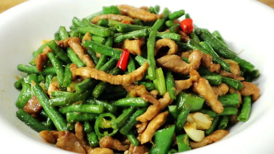 豆角炒肉片、上汤生菜