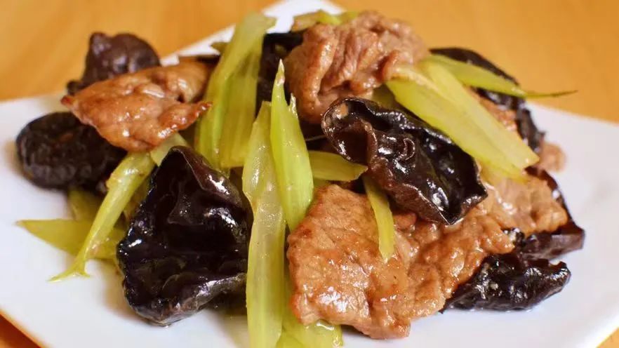 肉卷炒西芹木耳、紫菜蛋花汤