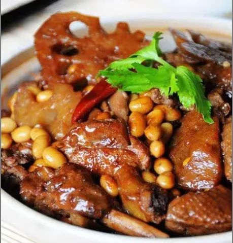 黄豆焖鸭、菜干猪肺汤