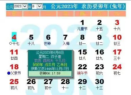 2023年6月6日,广州,阴历四月十九日,芒种交节。