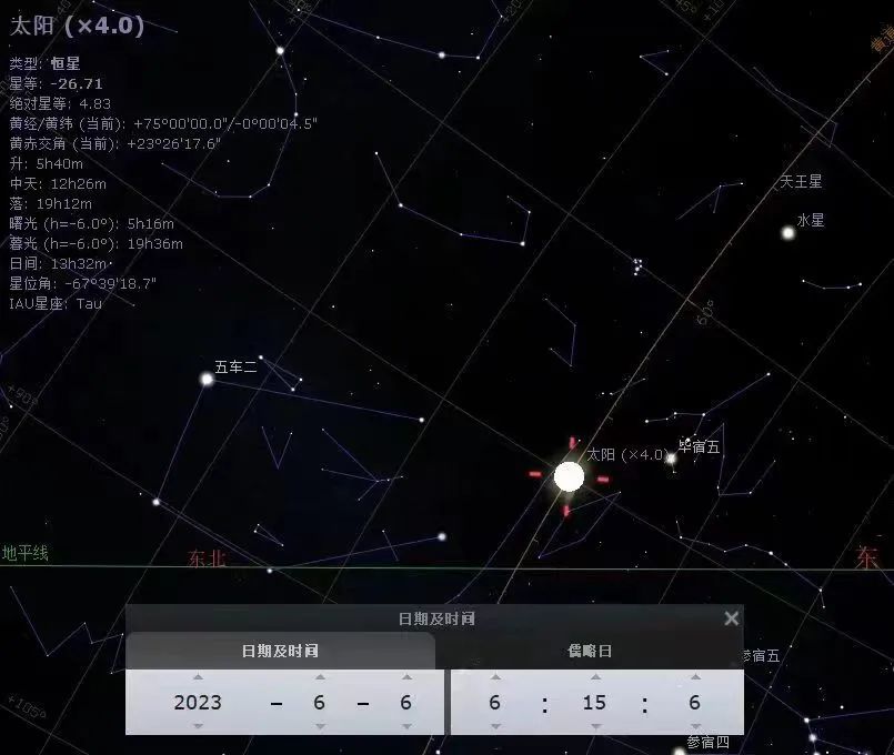 交节时,太阳周年视运动黄经75°,位于二十八宿的毕宿七度。芒种一交节,就进入传统阳历的午月,今年午月的干支是“戊午”。