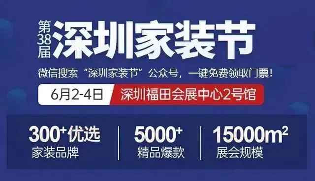 第38届深圳家装节将于6月2-4日在深圳会展中心(福田)盛大开幕。本届展会规模达15000平展览面积,300+品牌一站式家装家居采购展,大牌齐贺、总裁签售,买贵即退,售后无忧!汇聚了建材、家具、家电、装修、设计等装修全套环节,免去了业主四处奔波采购的麻烦,省钱又省心,应有尽有,关键价格还优于门店,为您家的装修精打细算~~~