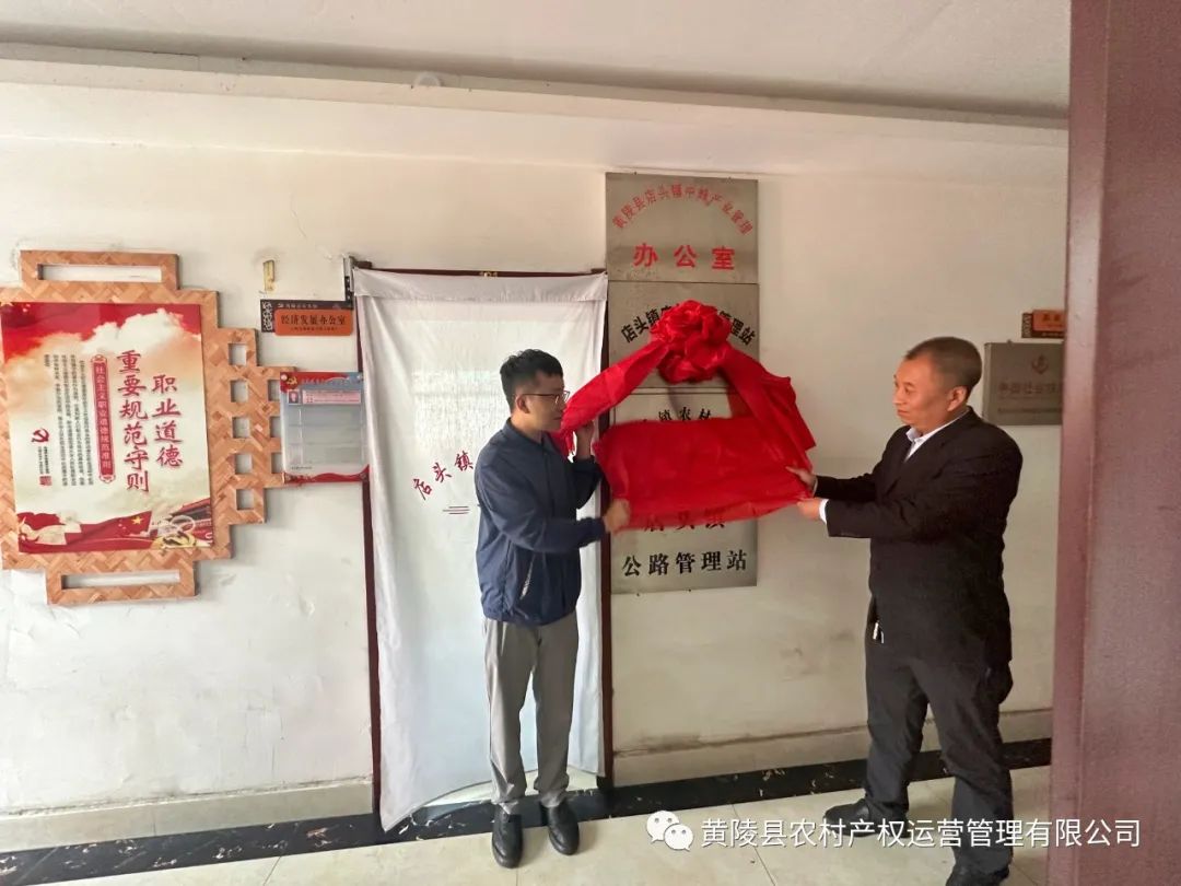 最后,黄陵县农村产权交易中心总经理冯恺与店头镇副镇长张军峰同志举行了服务站揭牌仪式,并宣布店头镇办事处农村产权交易服务站正式启动运营,全体参会人员进行了合影。