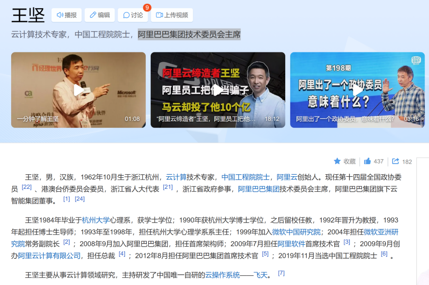 2019年,王坚当选中国工程院院士,成为首位中国互联网科技企业院士。