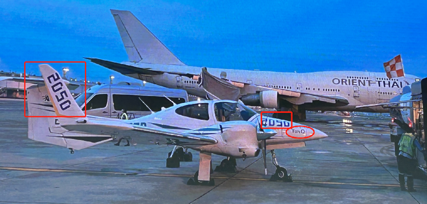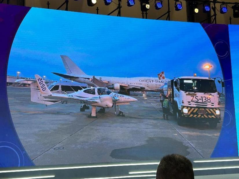 上面这张照片是大会现场拍摄的,图中的小飞机就是张博驾驶的飞机,机翼和机身上有“2050”字样。