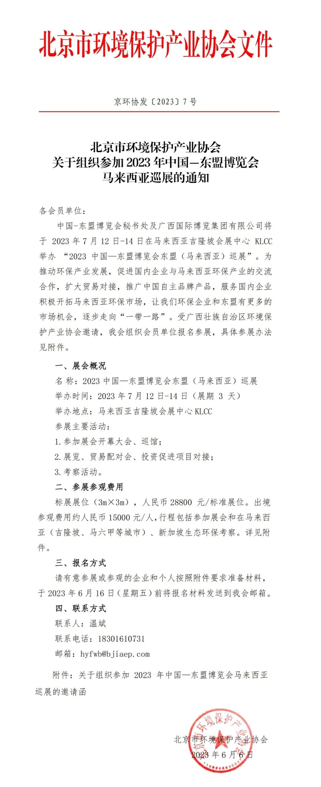 关于组织参加2023年中国—东盟博览会马来西亚巡展的通知