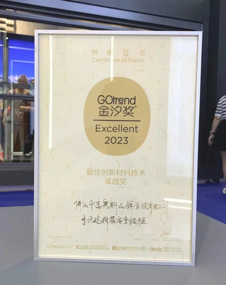 凭借强大的品牌实力及出众的创新技术,在设计周首日举办的金汐奖&质点奖颁奖典礼上,富奥斯门窗自主设计的实用新型专利“可快速拆装安全格栏”一举获得“最佳创新材料技术卓越奖”,备受瞩目。