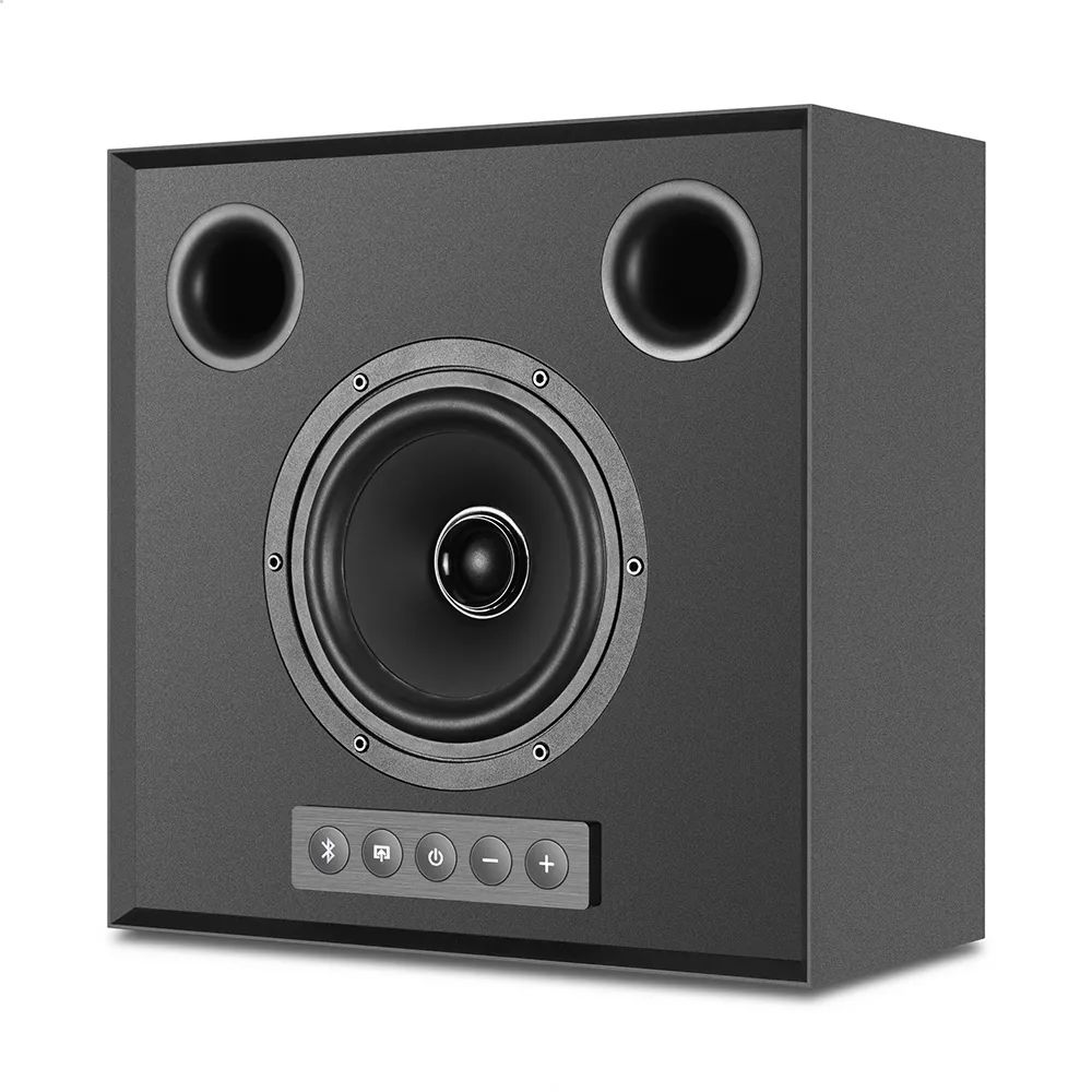 3、TWS真无线立体声,提供高码率无延时的无线音乐体验(我们的不仅蓝牙是无线立体声,即使是模拟信号输入也是立体声信号仅连接到主音箱输入,不用左右声道分别连接两只音箱,竞品不是真无线,模拟输入需要连接左右两只音箱)