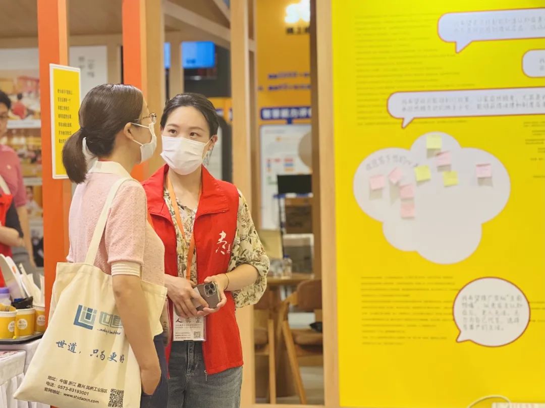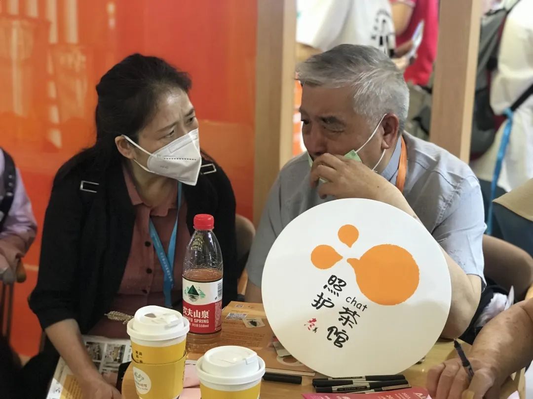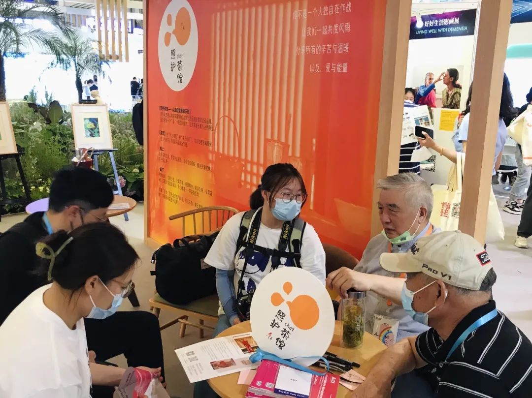进入展馆,第一站就是来到尽美展位,尽小美向大家介绍今天观展的的流程,并向前来的家属介绍【照护茶馆】。