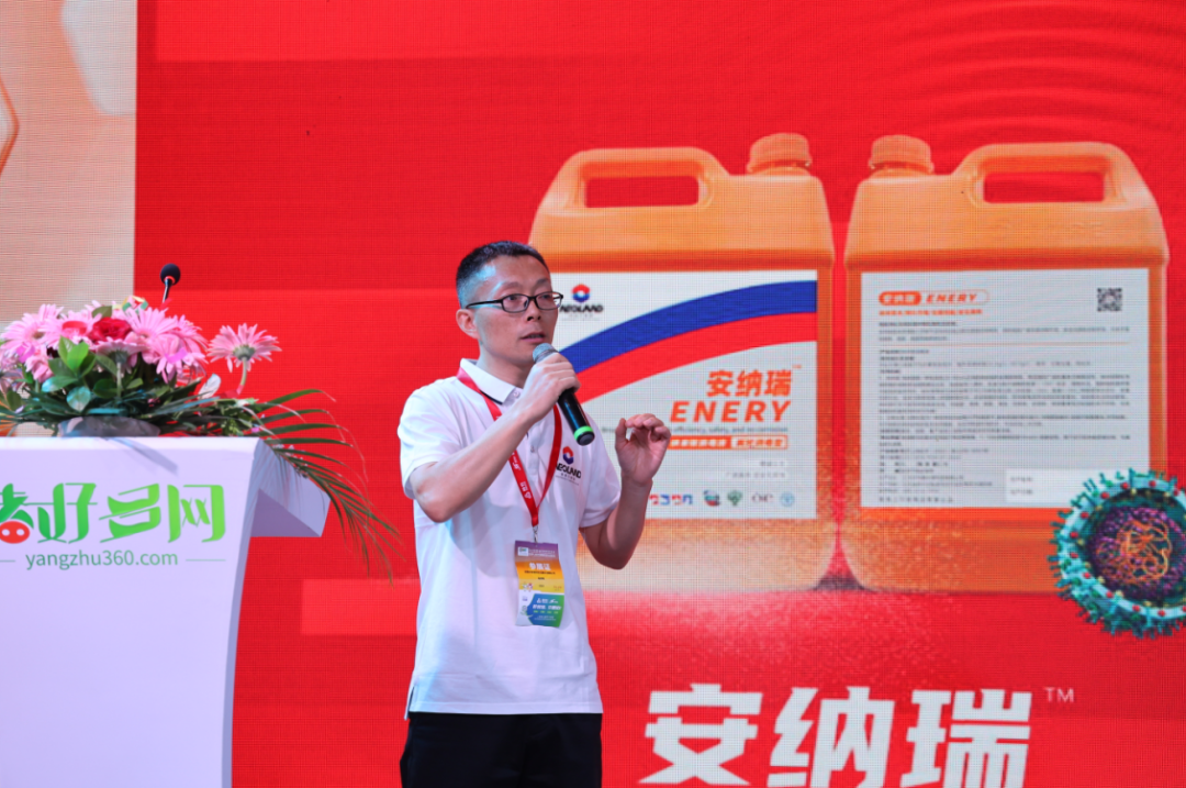 新奥兰科技集团技术总监陈阳清博士在主题分享中表示,消毒剂对猪场的生物安全防控体系至关重要,而在越发复杂的养殖环境下,必须选择一款安全高效、无二次污染、消杀全面的消毒剂,才符合当下猪场高效益消毒的需求。随着科技发展,纳米技术已广泛应用在催化、光电、生物医药等领域,而新奥兰生物在不懈奋斗中研发出了三款全面领先的纳米技术消毒产品,产品设计以德国工艺制作的纳米银-过氧化氢和法国技术为核心的纳米锌-二氧化氯为主成分。