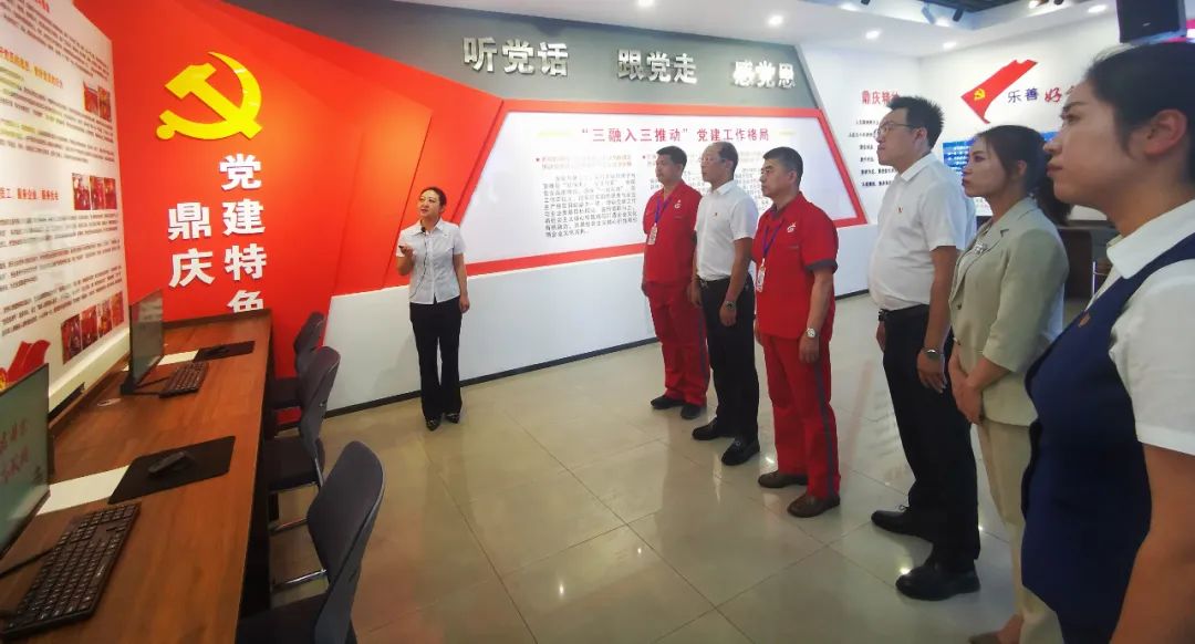 胡巍书记一行首先参观了鼎庆党群活动中心,详细了解了鼎庆公司开展党建工作、志愿服务活动,以及履行社会责任、企业文化建设等情况。