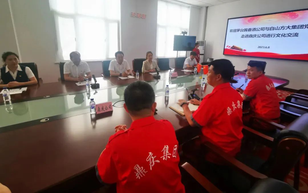 (通讯员:艳红)6月8日下午、茅台酱香酒公司和白山方大集团党支部的部分党员同志在党支部书记胡巍的带领下一行8人来到鼎庆公司进行学习与交流。鼎庆公司党委副书记郝继承应邀参加,第一党支部书记魏明超等部分同志陪同。