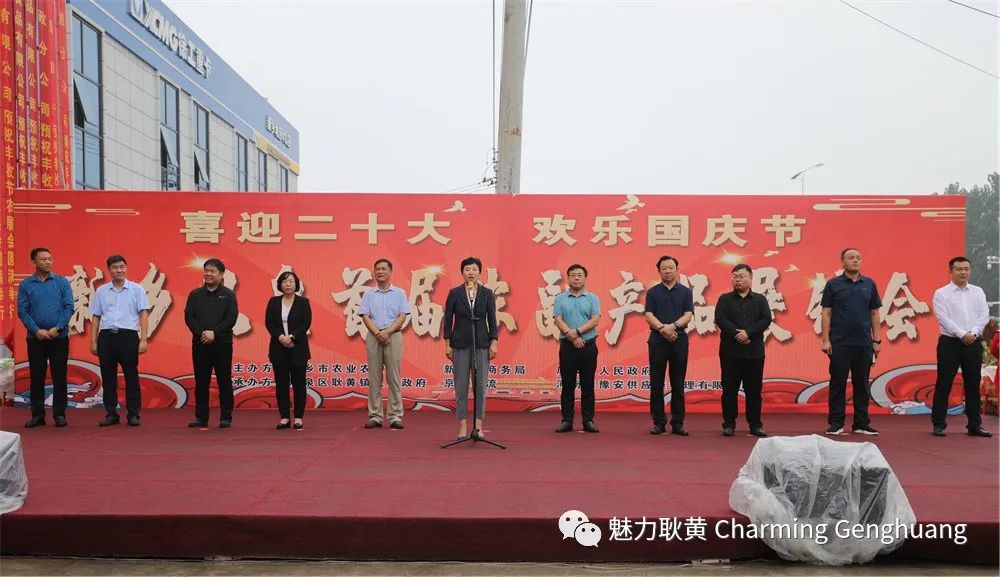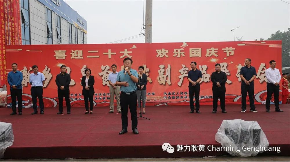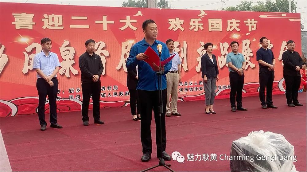河南德豫安供应链管理有限公司董事长琚宪庆为展会致辞,新乡市农业农村局副局长张克永为本次活动讲话,凤泉区区委书记杨洁宣布新乡凤泉首届农副产品展销会正式开幕。