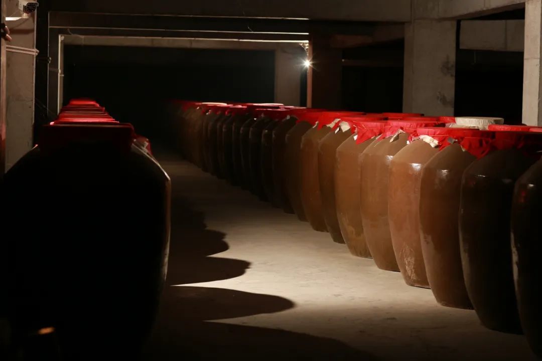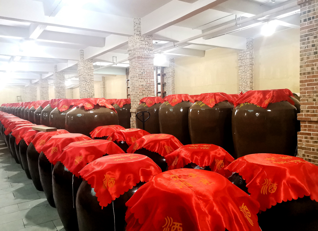 将新酿酒装入陶坛,置于阴凉、干燥、通风的环境或常年恒温的环境下储藏,自然挥发、排杂、增香,使酒体更醇厚、甘冽、饱满,经过时间的存贮,让其自然老熟,使酒体绵软适口,醇厚饱满,口味协调。