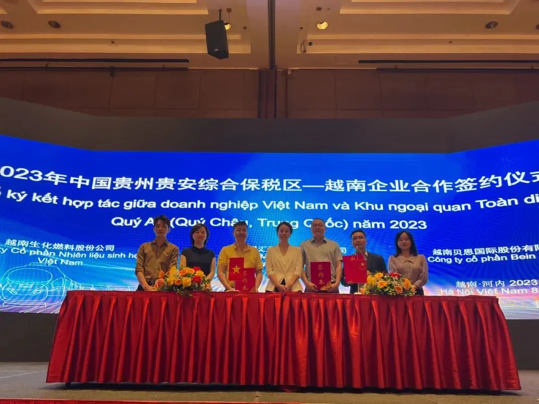 6月8日,中国(贵阳)—越南贸易投资合作企业洽谈会在越南河内举行。贵阳市委副书记、市长马宁宇,越南工贸部贸易促进局副局长黄明战出席活动并讲话。马宁宇代表贵阳市人民政府向出席活动的各位嘉宾表示欢迎和感谢。他说,中越山水相连、唇齿相依,两国在文化、科技、教育等领域的交流合作不断向广度和深度拓展。RCEP成员国家是贵州重要的外贸市场,贵阳市和越南的交流往来频繁,有着良好的合作基础。今年是共建“一带一路”倡议提出十周年,贵阳正积极抢抓RCEP等机遇,扩大与越南等东南亚国家的经贸往来,着力打造中国西部地区重要陆港、具有国际影响力的旅游名城。希望双方在贸易、投资、文化旅游等领域深化合作,推动实现共赢发展。黄明战代表越南工贸部对贵阳市政府代表团一行表示欢迎,并介绍中越经贸交流情况。他说,越南和中国都拥有丰富的资源和广阔的市场,希望双方以此次活动为契机,开展更多经贸交流活动,推动双方开拓更大市场,助力双方企业开展更大范围、更宽领域、更深层次的务实合作,实现互利共赢。越南将打造良好营商环境,真诚为企业在越南发展做好服务。据悉,此次活动吸引了30余家越南商协会和企业参会。会后,贵州贵安综合保税区建设发展有限公司分别与越南生化燃料股份公司、越南贝恩国际股份有限公司签署了购销协议;致着航空发展有限公司与越南旅游航空股份有限公司签署了战略合作协议;东浩兰生(贵阳)电子商务有限公司和越南万和投资发展公司签署了合作框架协议;贵州首杨农产品有限公司和钱江雄狮农产进出口责任有限公司签署了购销合同。越南工贸部有关司局、商协会和企业负责人,贵阳市有关部门负责人参加。