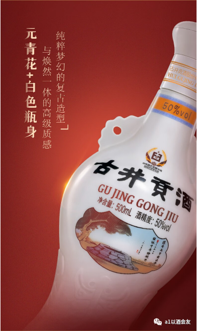 古井贡酒怀旧版整体风格基本保持一致,但细节上更为精致细腻,采用了贯穿式的设计,整体造型硬朗而有力量。营造出了非常强烈的醇香口感。