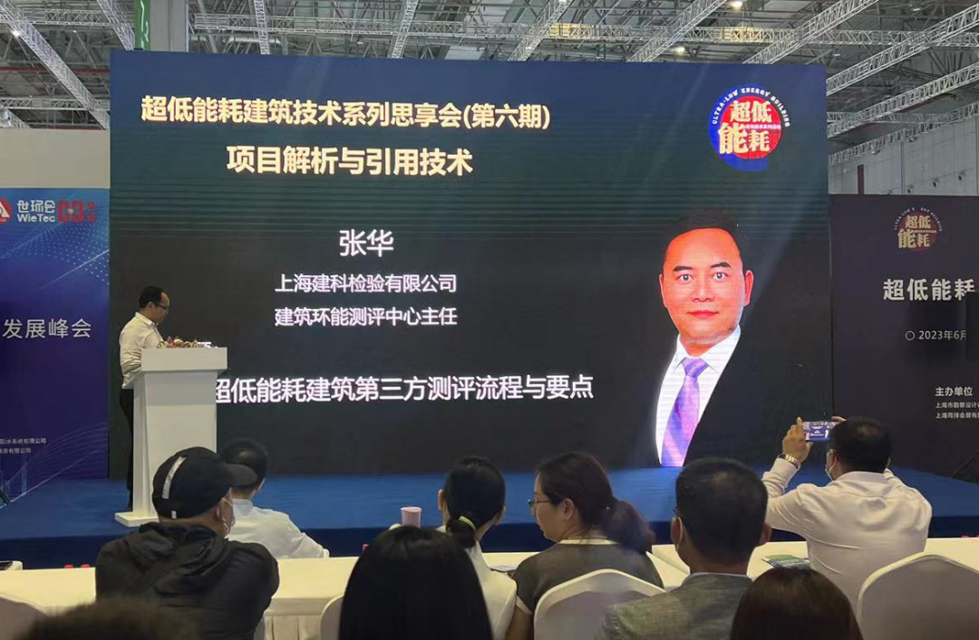 2023世环会【低碳建筑与舒适系统展】于6月5-7日在上海国家会展中心召开。上海建科检验有限公司亮相展会,并受邀参加超低能耗建筑技术系列思享会(第六期),检验公司建筑环能测评中心主任张华就“上海市超低能耗建筑第三方测评工作流程和要点”专题进行分享。
