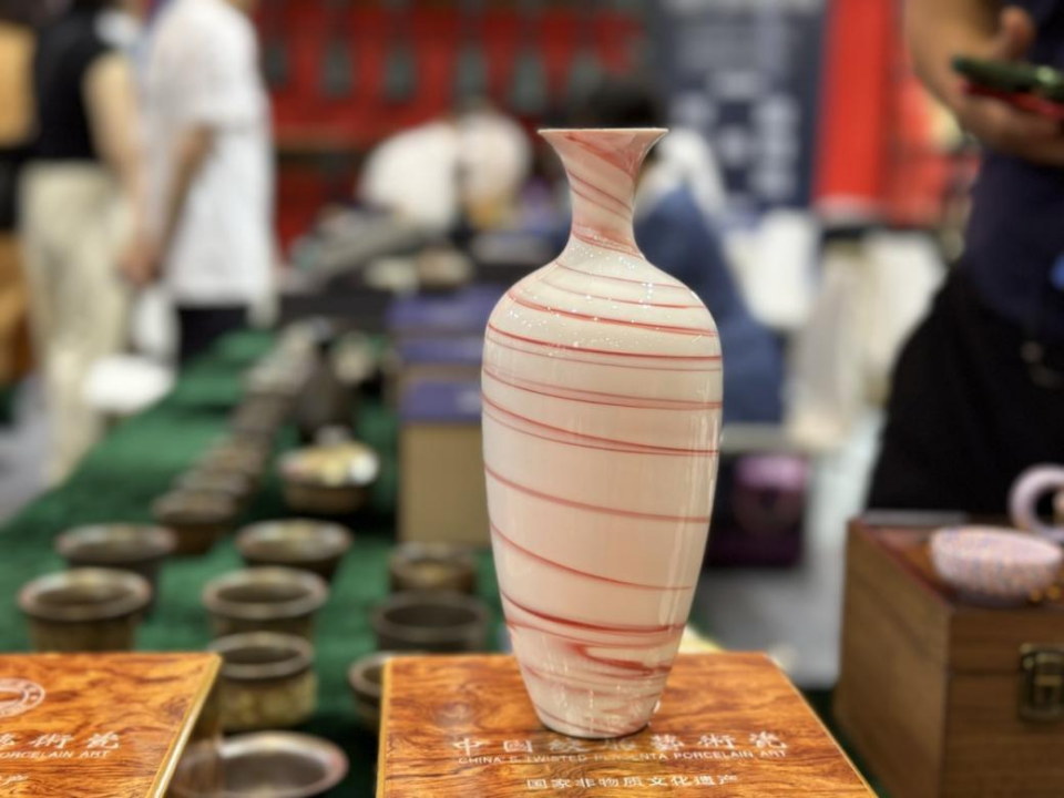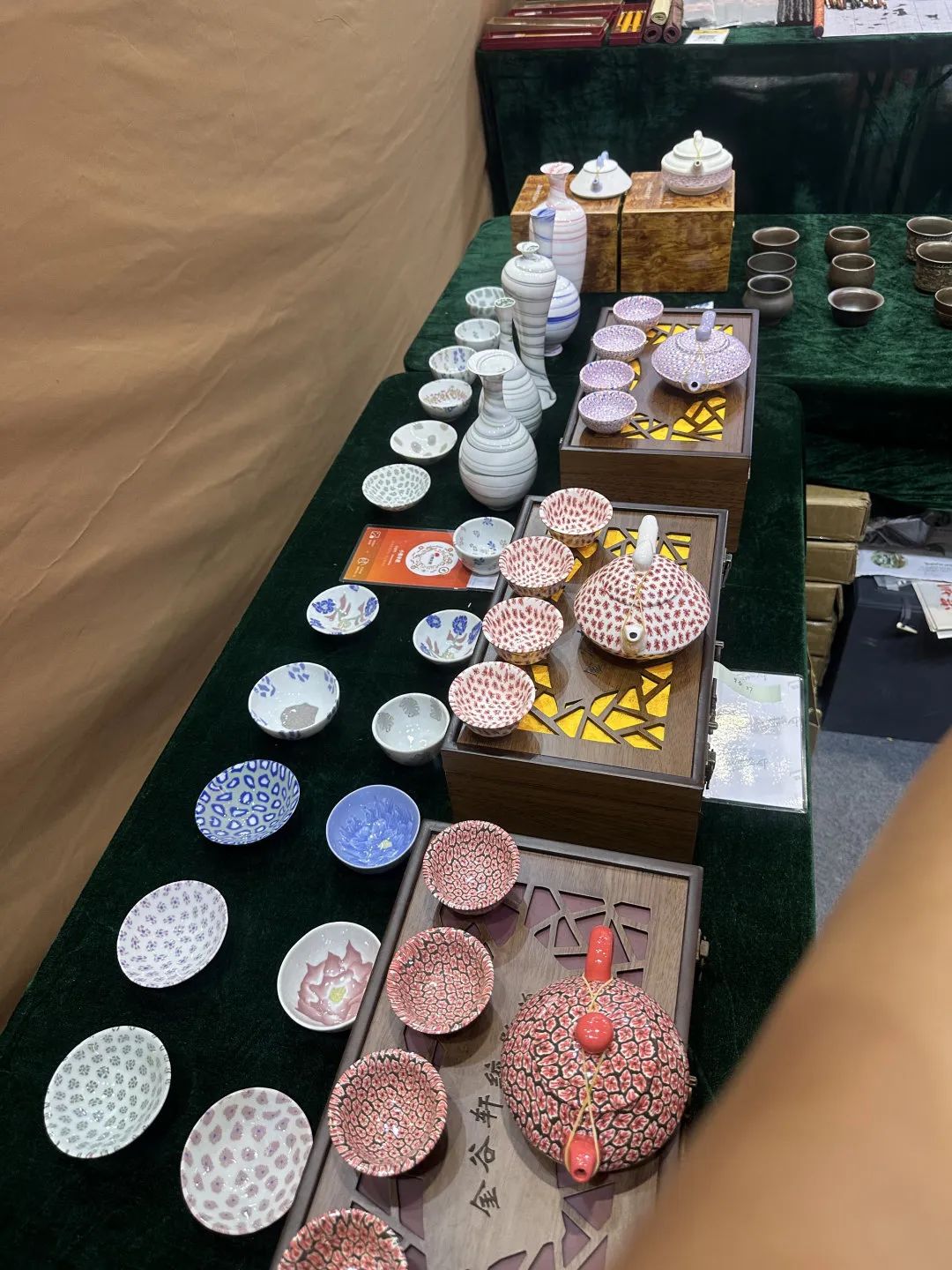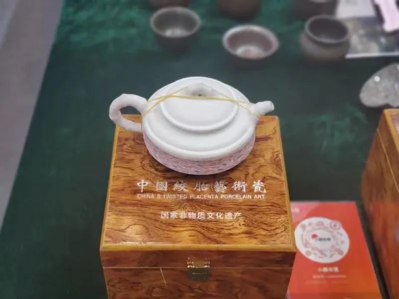 本次活动展览了多项国家级非遗代表项目精品,包括:绞胎瓷、滇瓦紫砂、汝瓷、毛笔、宫廷传统囊匣、和田玉雕、藤编、青铜编钟、烙画、线香、内画鼻烟壶、手作红茶等。展览现场可眼观瓷器之美。