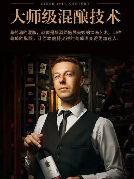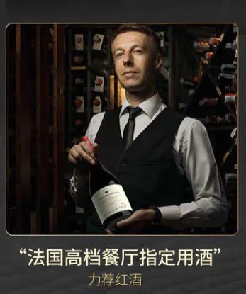 在详情页中,有一张穿西装外模手持产品推荐的照片,下方写着“法国高档餐厅指定用酒”。