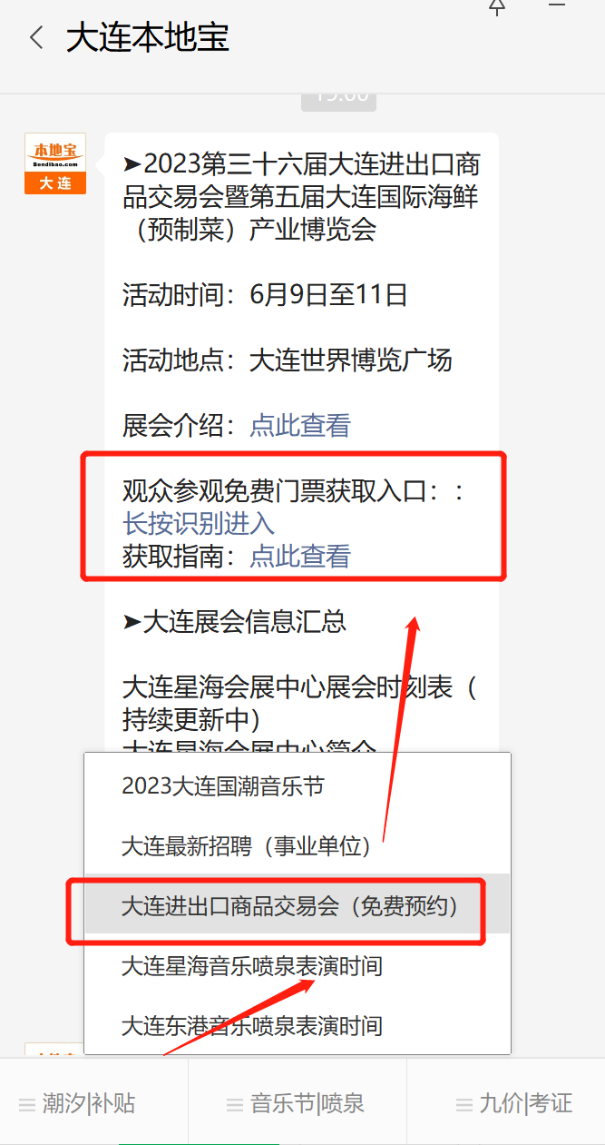 小编提醒:关注【大连本地宝】微信公众号,点击菜单栏【大连进出口商品交易会】,即可获取服务号,查看预约流程图解。