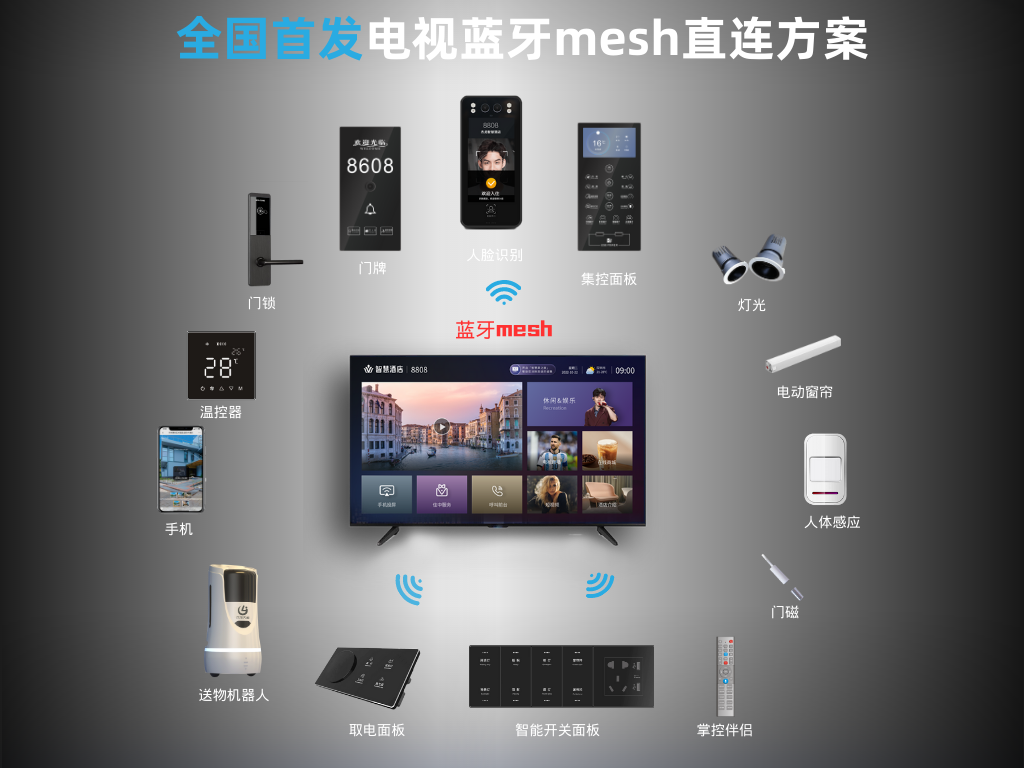 电视蓝牙mesh直连解决方案,是杰龙先创在客控市场上的重要技术成果。在技术及应用上开发,电视无需网关即可直连房间设备,为客控行业完成了最有价值的“减法”。