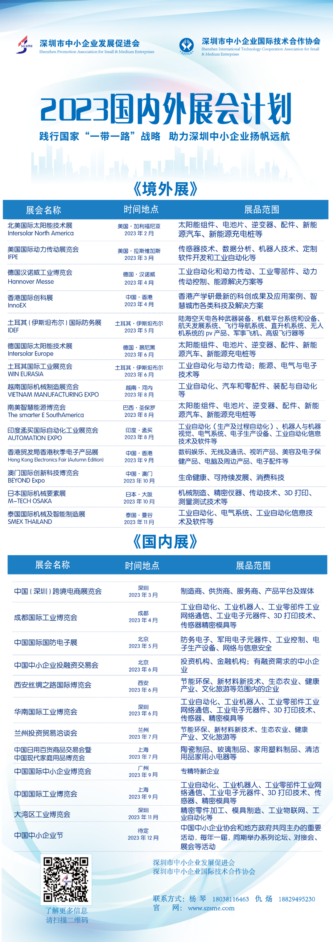 2023年开拓国内外市场有哪些项目可以参与?深圳市中小企业发展促进会,22023年国内外展会计划表出炉啦!(点击详情)