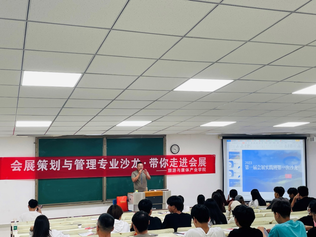 2023年6月2日,会展策划与管理举办了第一次专业沙龙。由刘笑慈老师主持,参加的班级有会展211、221、(3+2)221、旅游电商211、221、旅游管理221,并邀请到海南盛世博通文化传媒有限公司郑雪峰总经理为同学们做分享。