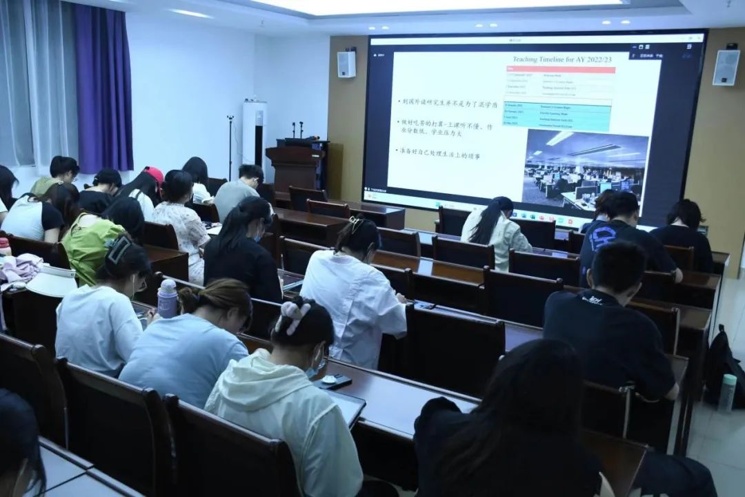随后,优秀留学生代表于悦、王子豪、宗岳锜分别向大家分享了自己留学前的申请经验和留学期间的学习生活。他们结合自己的学习体验,为同学们在留学过程中可能遇到的困难提出了有益建议。王子豪同学说道:“留学路上充满了挑战,口语学习至关重要,同学们要早规划、早准备,确立好目标方向,努力提高自己的学习和适应能力。”