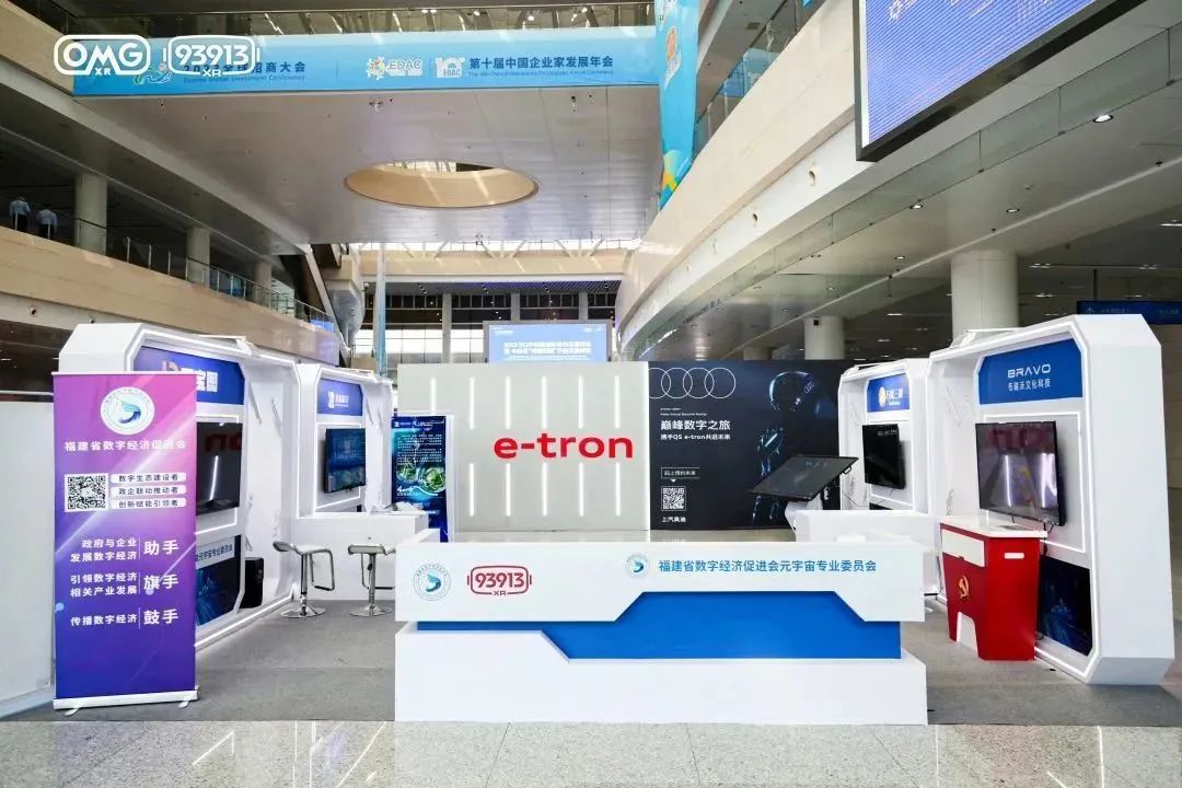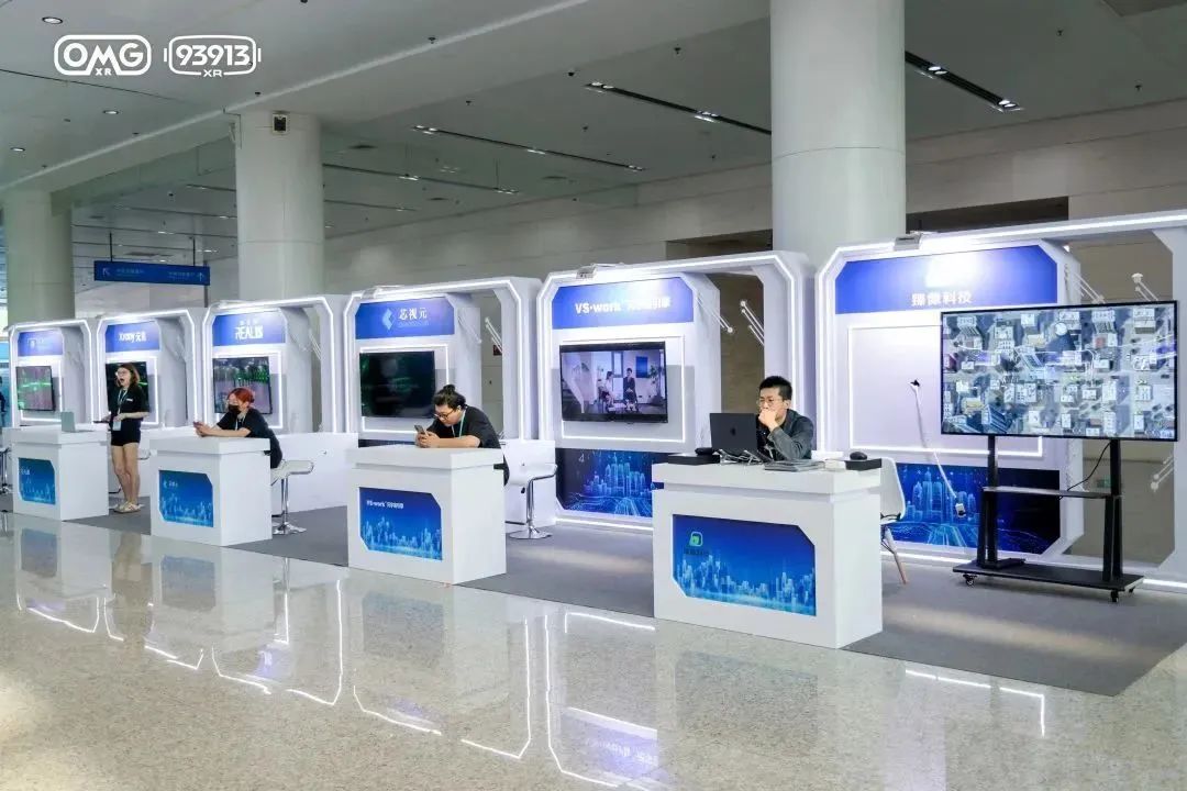 主会场围绕元宇宙主题进行展示展览,会场正中心为“元宇宙科技树”,四周围绕各个主题的VR设备展示等。
