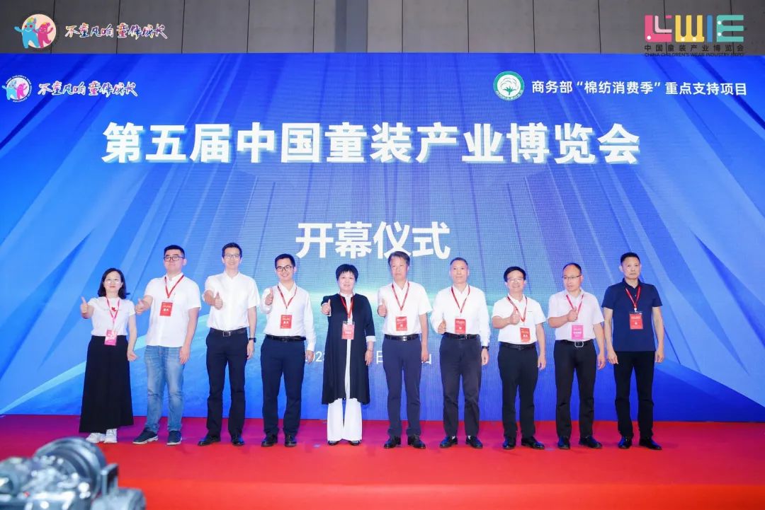 6月9日,以“全新潮代 童领未来”为主题的第五届中国童装产业博览会(以下简称“第五届童博会”)在佛山潭洲国际会展中心盛大开幕。此次博览会由中国纺织品商业协会主办,佛山市儿童用品产业协会承办,禅城区经济和科技促进局、禅城区张槎街道办事处协办。中国纺织品商业协会会长雷利民、原会长李建华、会长助理史研、秘书长王江波,中国国际贸易促进委员会佛山市委员会会长李德,佛山市商务局副局长何满初,佛山市工业和信息化局四级调研员徐忠平,佛山市民政局四级调研员刘宇明博士,禅城区人大常委会副主任胡安泉,禅城区人民政府副区长李健荣,禅城区政协副主席刘志诚,禅城区委统战部副部长、禅城区工商联党组书记何树营,禅城区经济和科技促进局局长陈娴,禅城区市场监督管理局局长梁梓熙,禅城区张槎街道党工委书记何永庆,禅城区区委区政府办公室副主任杨梅玉,禅城区市场监督管理局副局长潘锦波,禅城区祖庙街道党工委委员吴俊文,湖州市吴兴区织里镇党委委员吴谦,安阳市北关区工信局副局长栗相庭,株洲市高新技术开发区董家塅片区管委会专职副书记唐玉美,株洲市芦淞区商务局外贸办主任宁翔,广东省孕婴童用品和服务协会执行会长陈新华,云南省孕婴童用品协会会长李加梅,湖北省婴童用品协会副会长张大海,温洲市童鞋商会副会长黄文琴,温州市瓯海区童装批发商会会长季圣焕,柳州市纺织服装协会会长李球,中山市小榄镇商会副秘书长梁婉霞,广东职业技术学院校长吴教育,佛山市儿童用品产业协会会长卢良添,以及部分参展商和采购商代表共同出席开幕仪式,见证第五届童博会的焕新启幕。