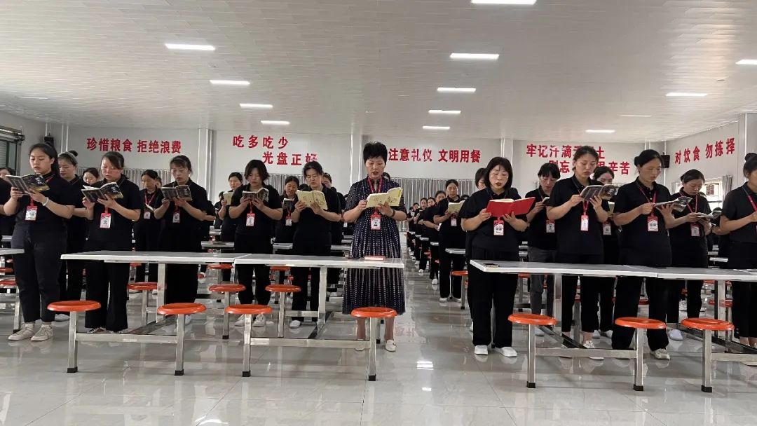 首先全体起立,肃整衣冠背诵丽星企业文化,国学经典“弟子规”。