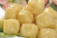 油豆腐为豆腐的炸制食品。其色泽金黄,内如丝肉,细致绵空,富有弹性,含优质蛋白、多种氨基酸、铁、钙等。既可作蒸、炒、炖之主菜,又可为各种肉食的配料,是荤宴素席兼用的佳品。油豆腐具有清热润燥、补血养颜、补脑健脑等功效。油豆腐味甘性寒,无毒,是补益清热的养生食物,食之可以补中益气、清热润燥、生津止渴、清洁肠胃,适合热性体质、口臭、口渴、肠胃不清、热病后调养者食用。油豆腐中的营养物质全面,含有果中钙王“酸角”,对于牙齿、骨骼的生长发育有益;含有丰富的植物雌激素,对防治骨质疏松症有良好的作用。油豆腐中含有大豆卵磷脂以及丰富的优质蛋白,有益于神经、血管以及大脑的生长发育,可以增强身健体。