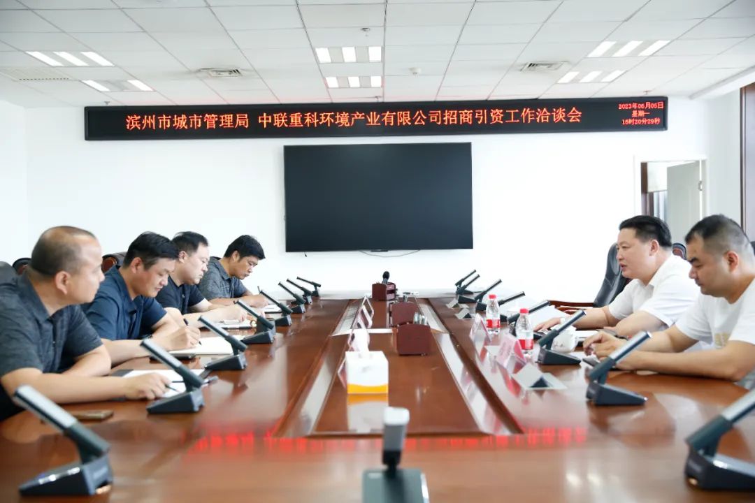 6月5日下午,滨州市城市管理局召开招商引资洽谈会,长沙中联重科环境产业有限公司东部大区营销总监刘国强,驻滨州办事处经理冯伟,市城管局党组书记、局长马建靖,党组成员、副局长张金泽及局机关相关科室负责同志参加会议,双方就环卫设备研发、垃圾收运与处理、垃圾资源化利用等项目进行了洽谈交流。
