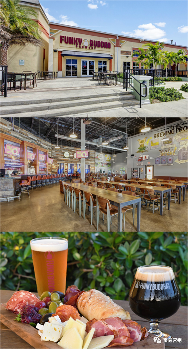 同时Funky Buddha是前店后厂的模式,在店里有水果、咖啡、巧克力、面包、花生酱、培根等风味食品,顾客还可以参观酿酒厂内部,并在Tap Room 酒吧饮酒、用餐,以及参加瑜伽、观看球赛、live演出等门店活动。