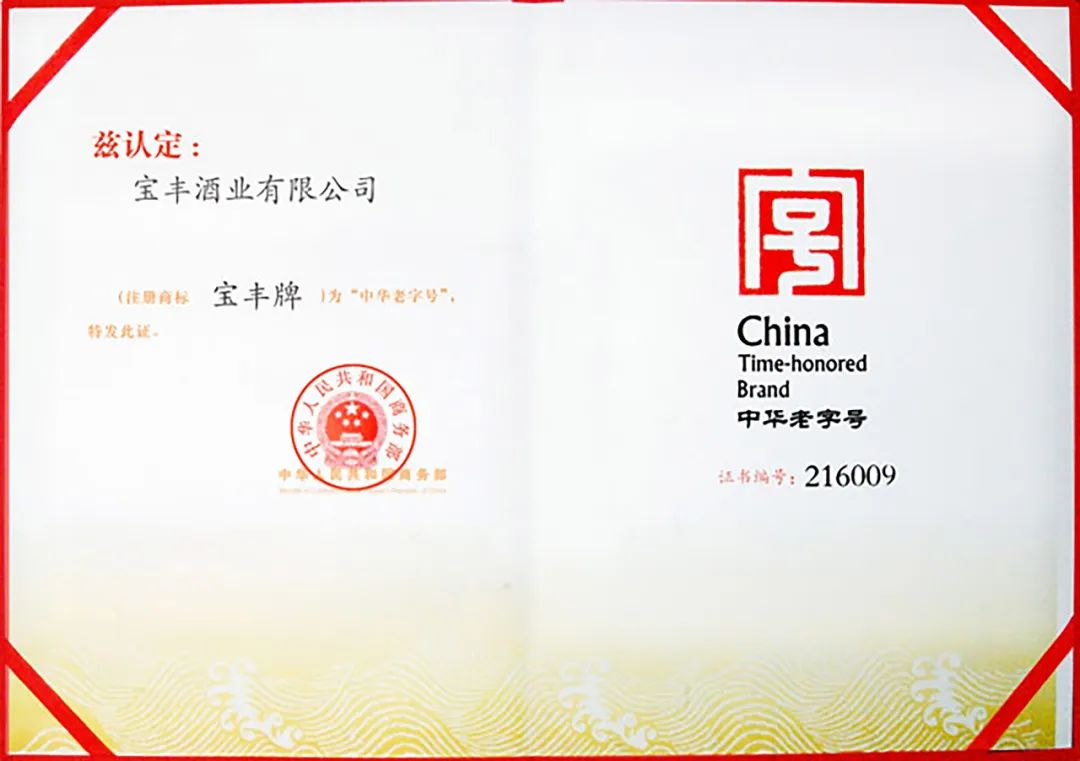 宝丰酒有着4200年的酿酒历史,文化悠久深厚,其酿造技艺传承于北宋时期大理学家程颢创立的程氏酿酒法,940年来一脉相承,并于2008年入选国家非物质文化遗产。2011年,宝丰酒凭借悠久的历史文化和国家非遗技艺,被国家商务部认定为“中华老字号”。