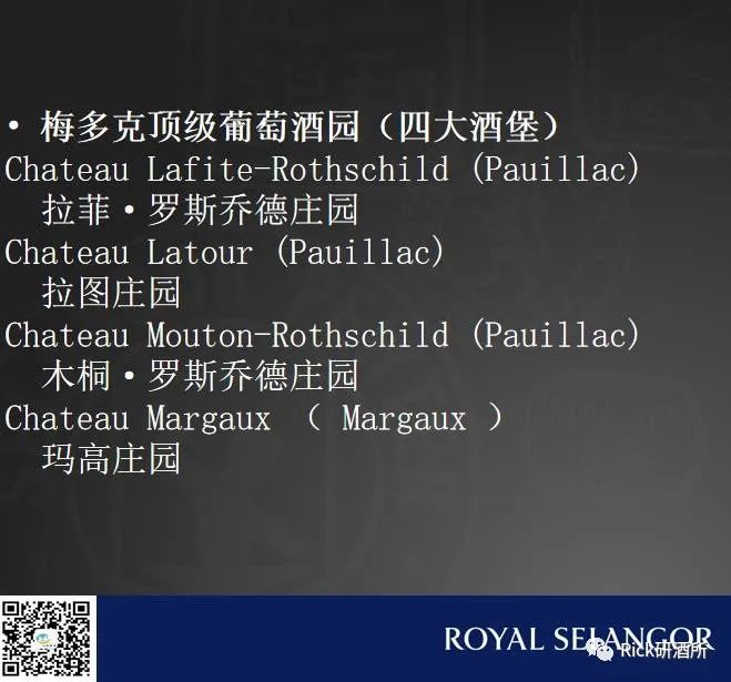 一、Medoc梅多克(美度区,美铎区)红酒为主。