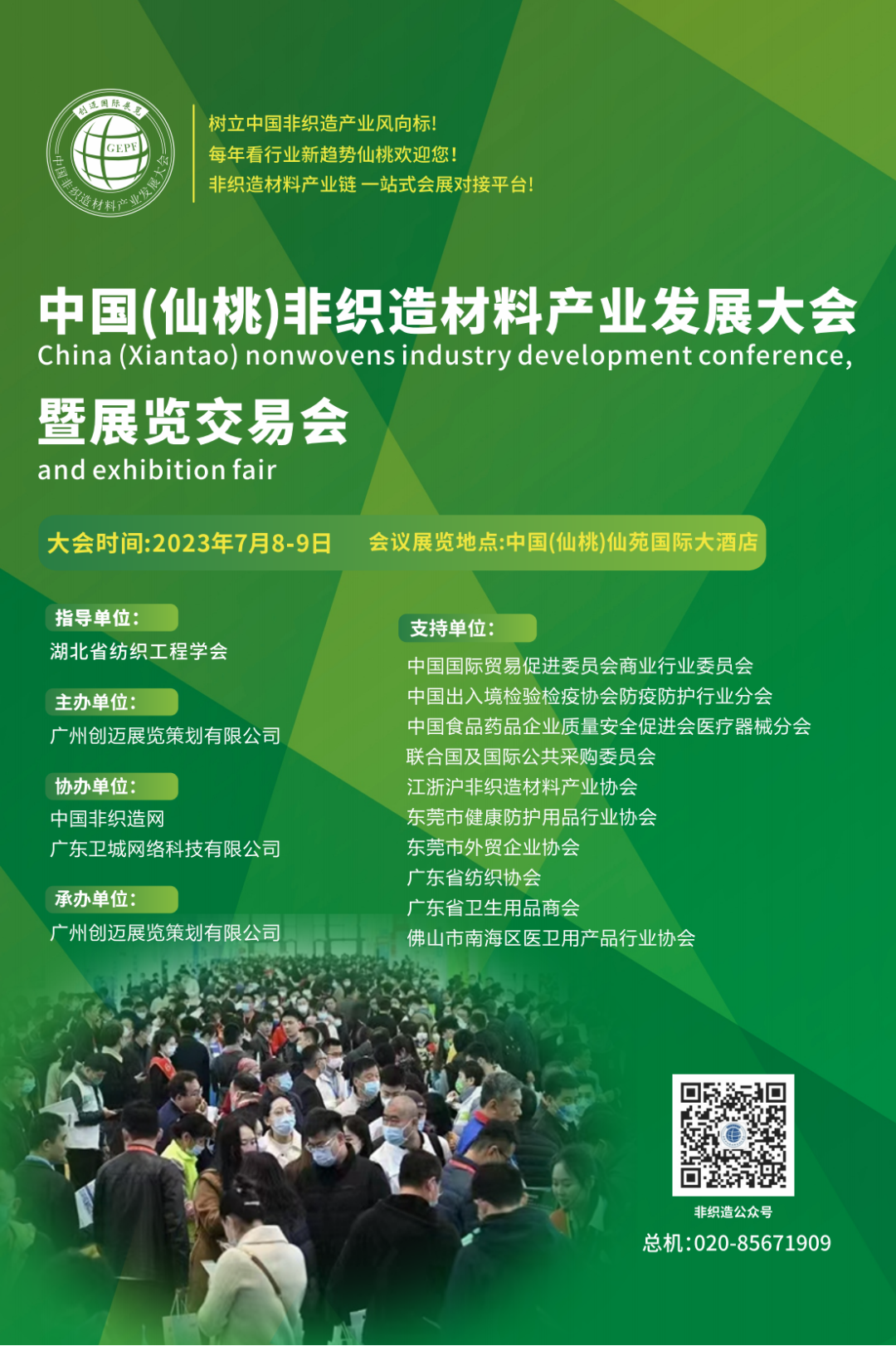 南海医卫用协会支持举办的“中国(仙桃)非织造材料产业发展大会暨展览交易会”将于7月8-9日在仙桃盛大启幕,诚邀行业企业莅临参展,以及各界专业观众和客商参观、采购,共谋发展、共话合作。