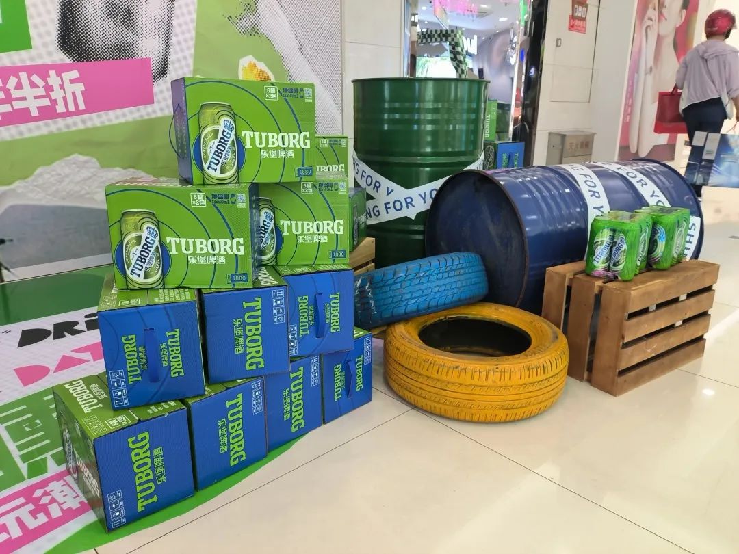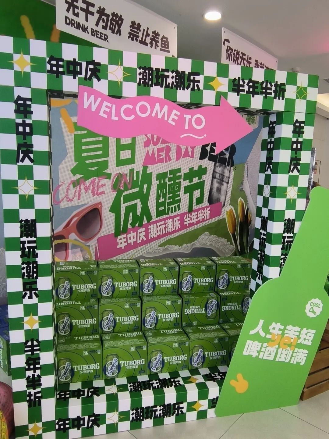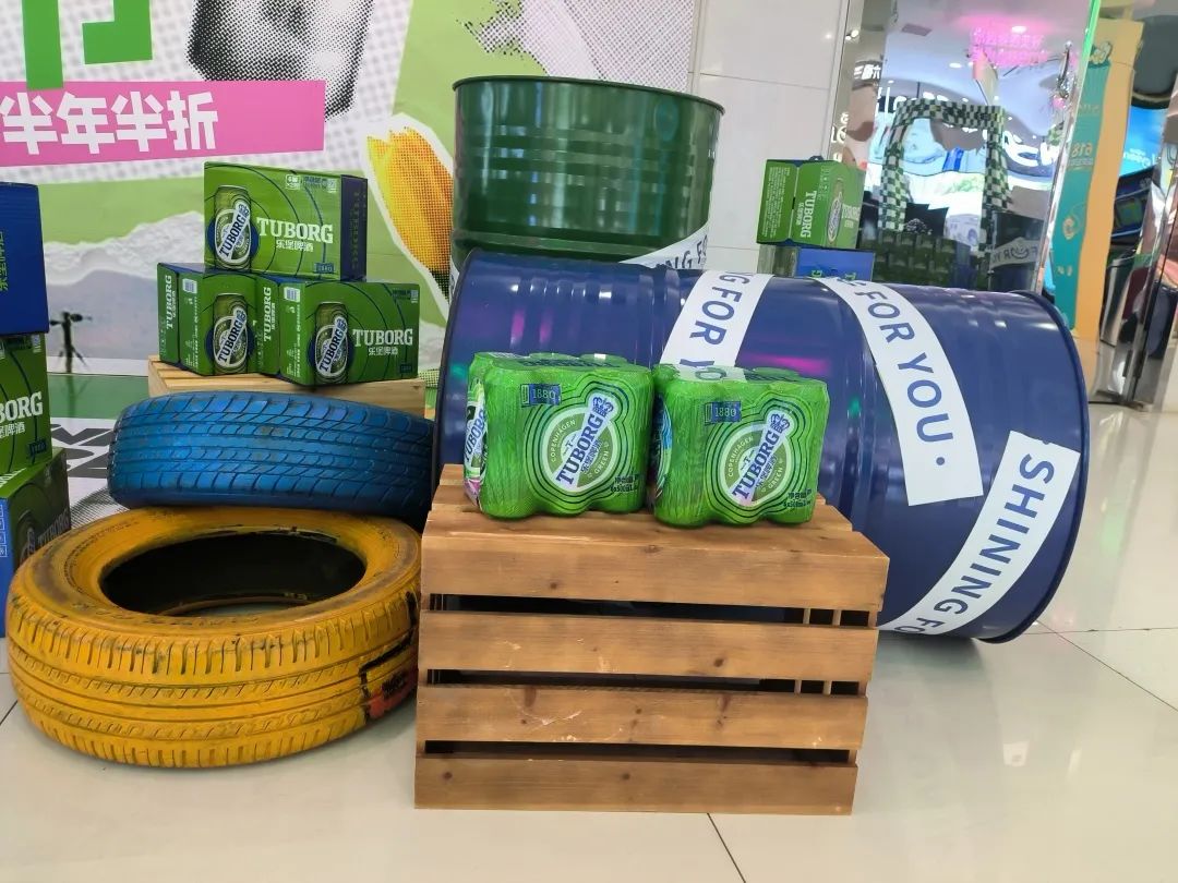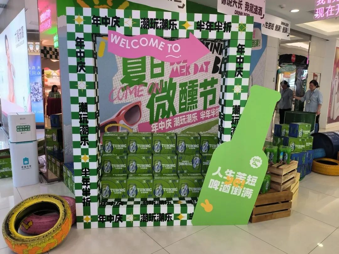 活动期间,顾客在新百南、北楼各打卡处参与“6.18年中庆”打卡活动,随机集齐5枚印章,即可免费获赠2听啤酒,限量,每日。