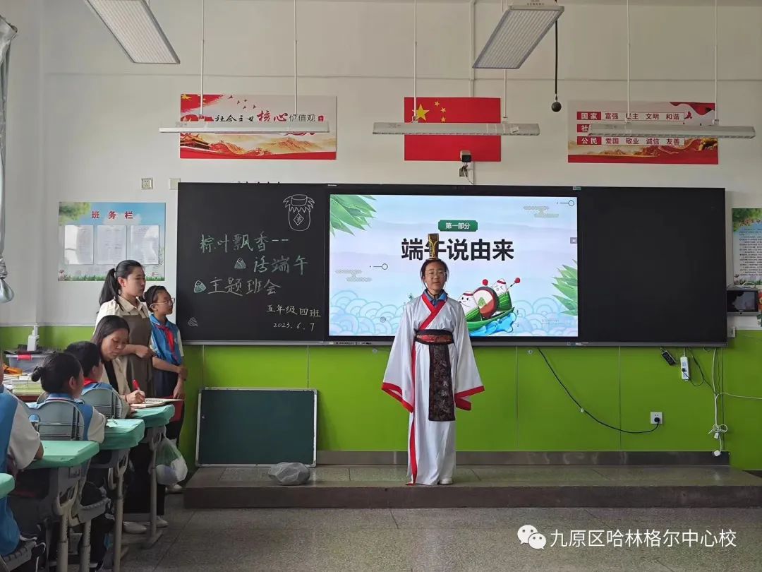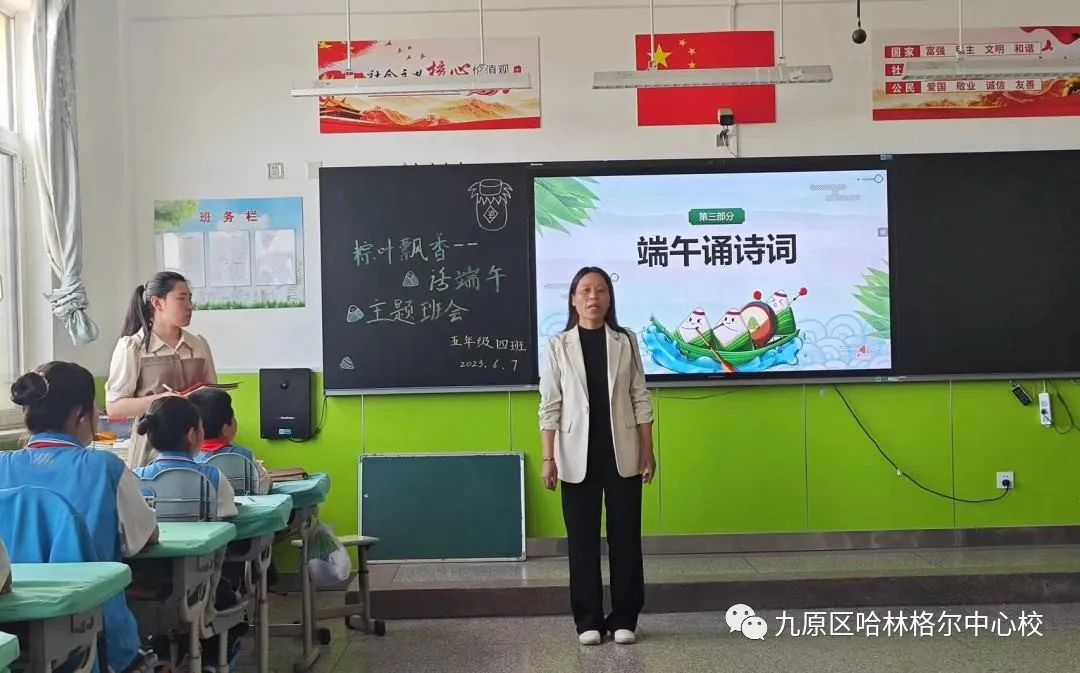 端午节是中华民族的传统节日。为了让学生们进一步了解中国传统文化,增强文化自信,认同传统节日,过好传统节日,佟乌日汗老师和五年级(4)班承担了“粽叶飘香——话端午,忆屈原”主题班会展示活动。
