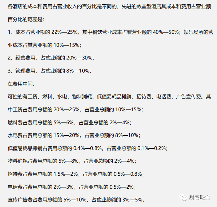餐饮行业各项成本费用的参考标准(仅供参考)