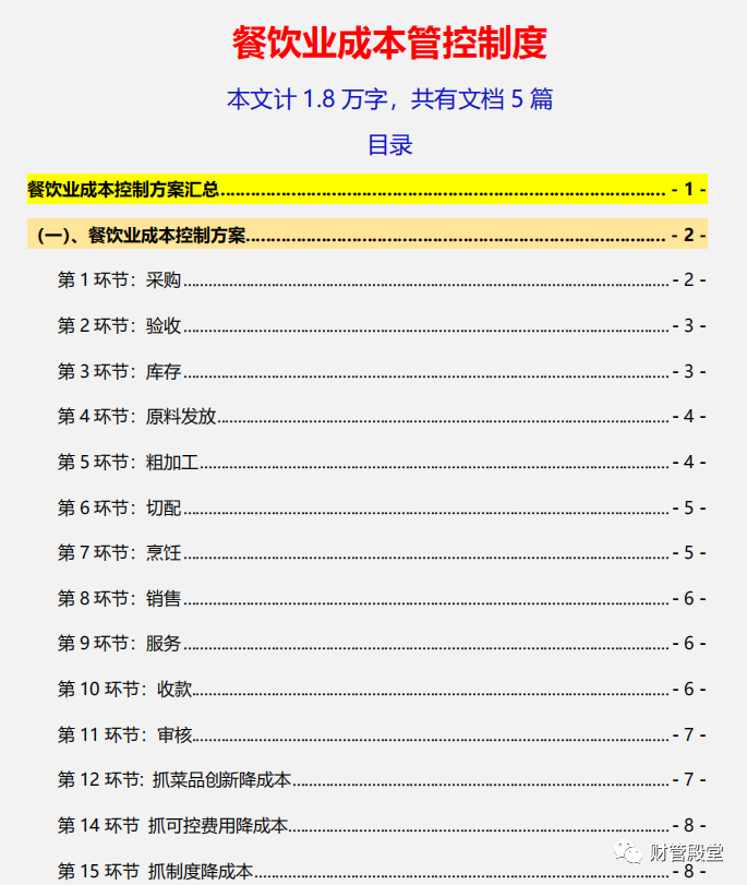 发现广东财务总监:把餐饮业成本管控制度编制这么详细,大家瞅瞅!不同行业都会重视起成本管控,作为餐饮行业来说,控制好每个环节的成本,就是直接的获利!也是餐饮行业的生存之本!特别是从这几年的疫情来看,能够在疫情期间还能正常营业的,都是成本管控的到位的。今天也在这里给大家瞅瞅这套完整版餐饮业成本管控制度,一共涉及到17个环节的成本管控制度,本文都会详细的说明,从事餐饮行业的财管人员,对于餐饮行业的成本管控做的不是很到位的,今天小编分享的内容,大家可以借鉴一下。