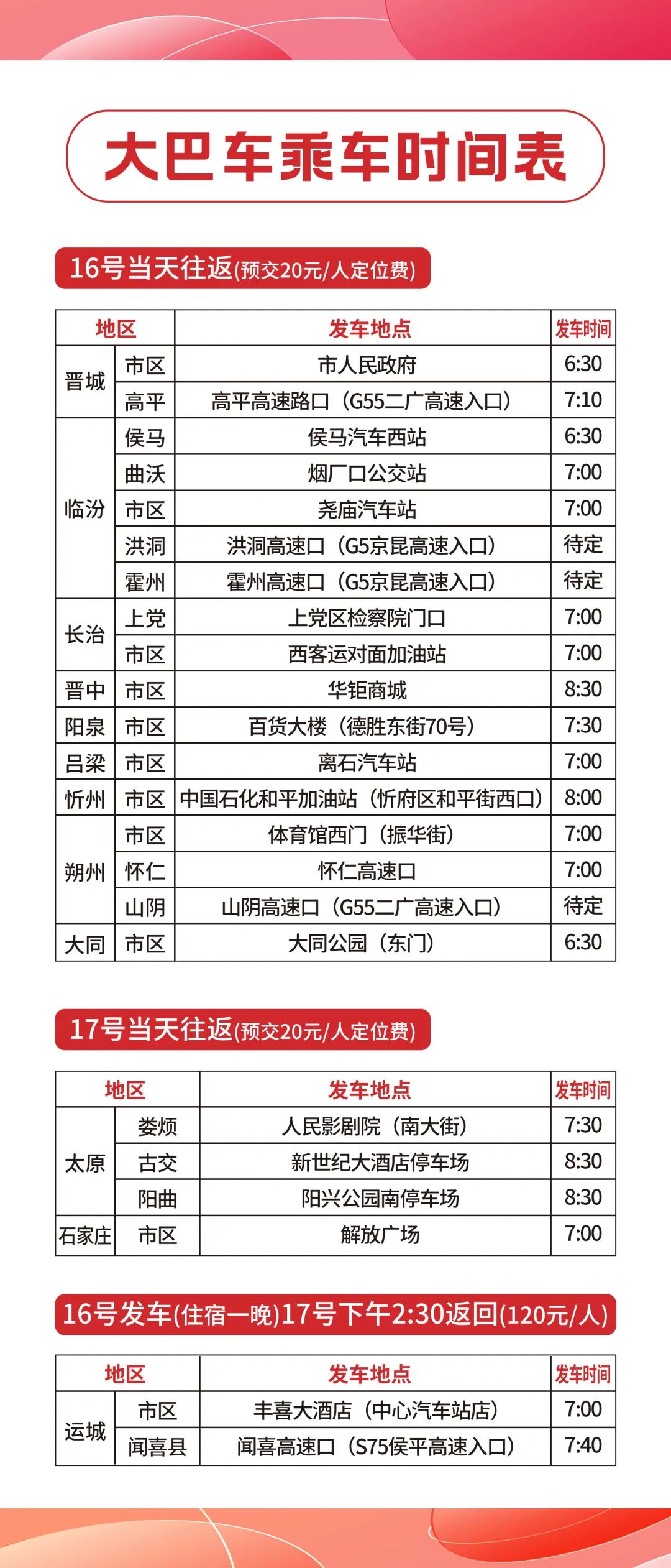 山西国际美博会作为中国美容系列展在华北地区美业市场的重要布局之一,此次大巴车覆盖区域包括晋城、临汾、长治、晋中阳泉、吕梁、朔州、打通、太原、运城、石家庄等城市。(详细见下方大巴车时间表)。