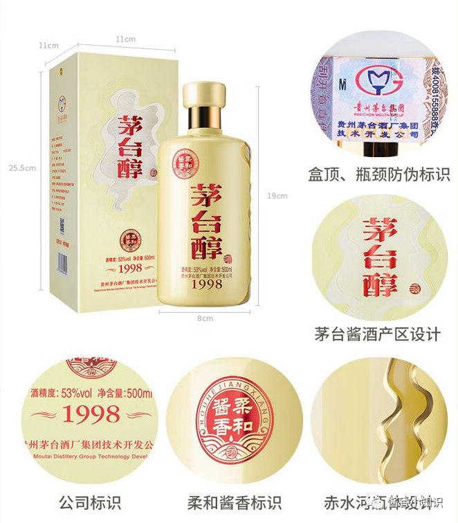 柔和酱香53度,500毫升,来自茅台酒厂技术开发公司,简称技开。这个酒的特性就是醇厚、柔和和舒适,这个酒的包装看起来还是有点档次的,这个上面还有个防伪标,来自茅台集团的标识,这个侧边,它是透明的。这个酒花的消散,还挺慢的,这个酒的背面,香型是柔和酱香型白酒。原料是高粱,小麦,水,执行标准是企业标准,它这个执行标准,跟一般的不太一样,它这个酒花是非常的丰富,而且消散也比较的慢,这个酒的酒花,明显感觉比一般的酒花稍微大一点点,然后的它的消散速度,明显感觉要比较的慢,酒色微微黄,不算明显,挂杯比较的明显,但不算厚重,这酒不是茅香。有一点点偏川酱。酒体浓郁度不高,但酒体还挺均衡。依然是纯粮食酒,闻不惯酱味却又喜欢酱酒的酒友,可以品尝一下。