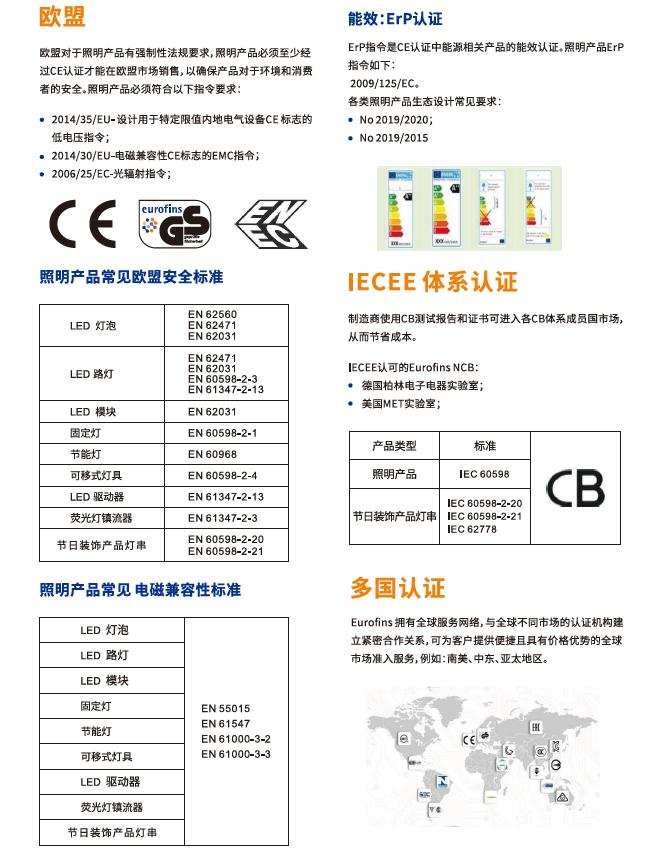 Eurofins欧陆电子电器中国事业部在深圳、广州、厦门、苏州和台北等地均设立电子电器实验室,服务于众多领域:医疗器械、家用电器、IT音视频类产品、灯具照明、电源电池产品、电动工具、防爆电器、工业机械等,为“中国制造”企业提供一站式解决方案。始终以“为生命质量做检测”为己任,久久为功,日臻完善,力争成为最具信息化与创新性的行业翘楚。